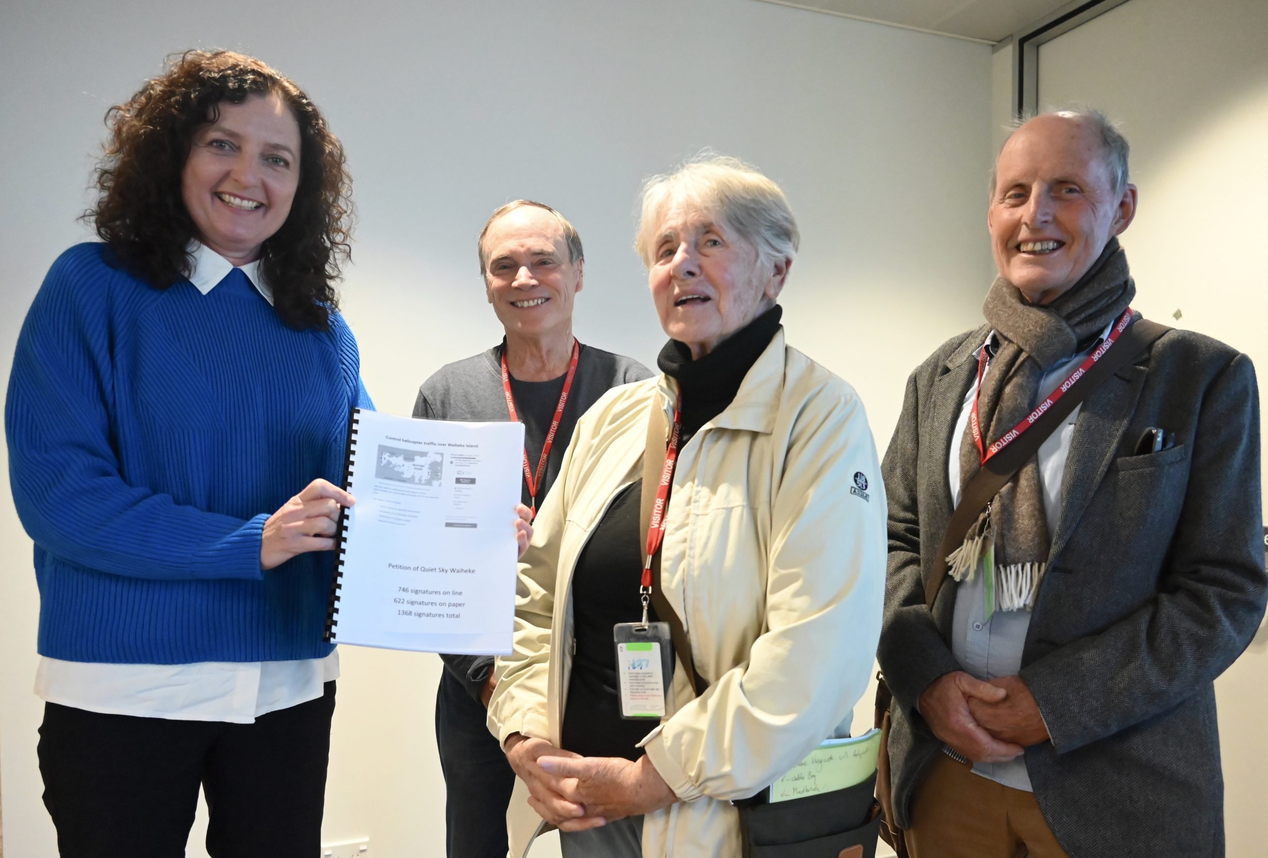 Receiving a copy of the Quiet Sky Waiheke petition On 28 July I was presented with a copy of a petition from Quiet Sky Waiheke to reduce helicopter traffic over Waiheke. The petition was officially presented to Auckland Council Planning Committee meeting on 5 August.