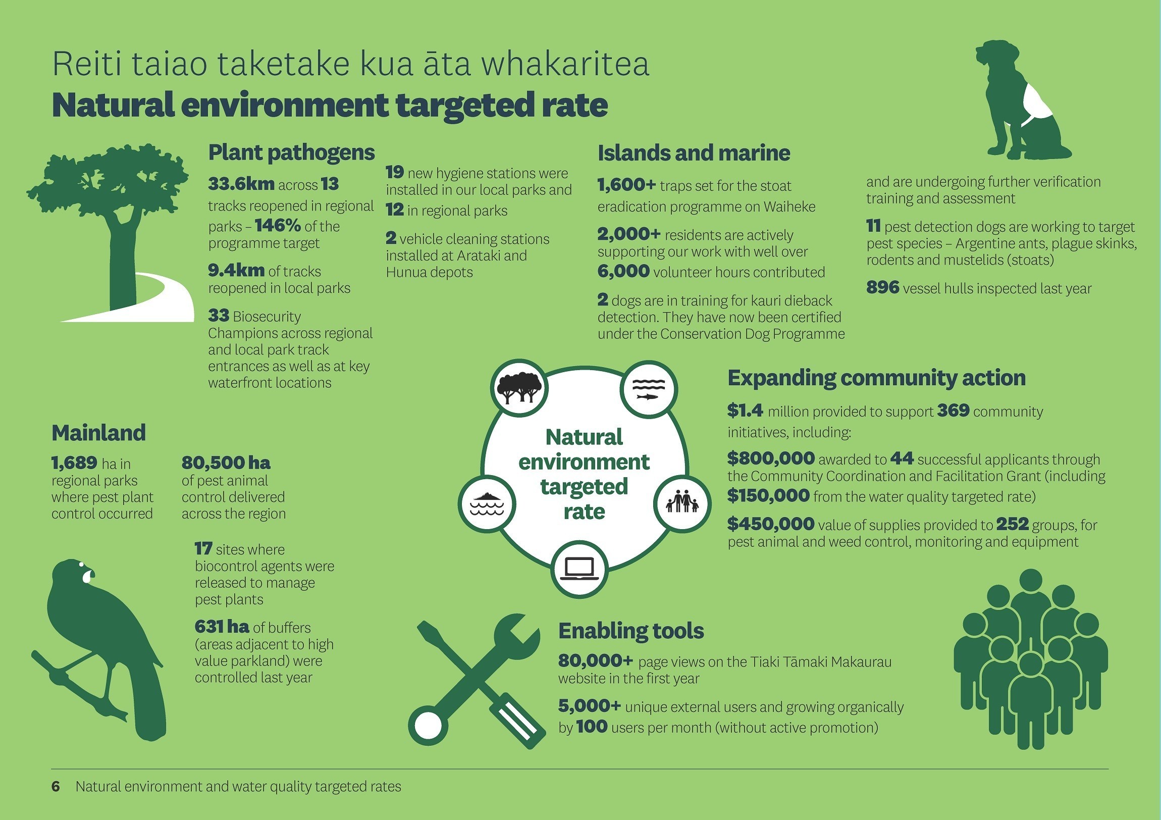 The natural environment and water quality targeted rates were established in 2018 to enable Auckland Council to invest in protecting and restoring our natural environment and improving water quality.