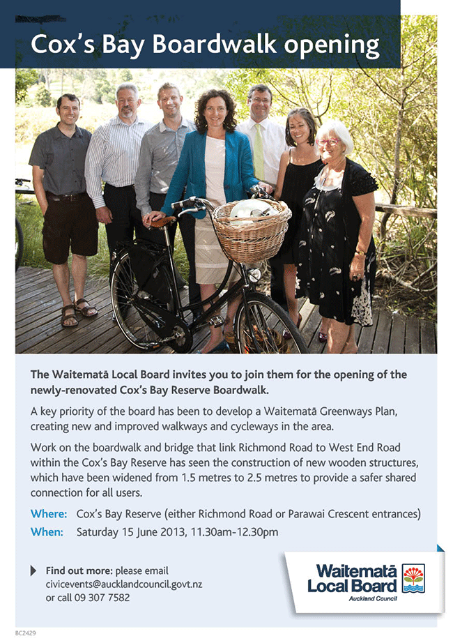 There are still things to get right and we’ve heard AT acknowledge the design and consultation issues on one section.  Auckland Council also has a path section in Coxs Bay to finish off that got held up by the  resource consent.  I’m confident that we’ll work through these issues with AT and the community so that everyone can enjoy and benefit from a new community asset.