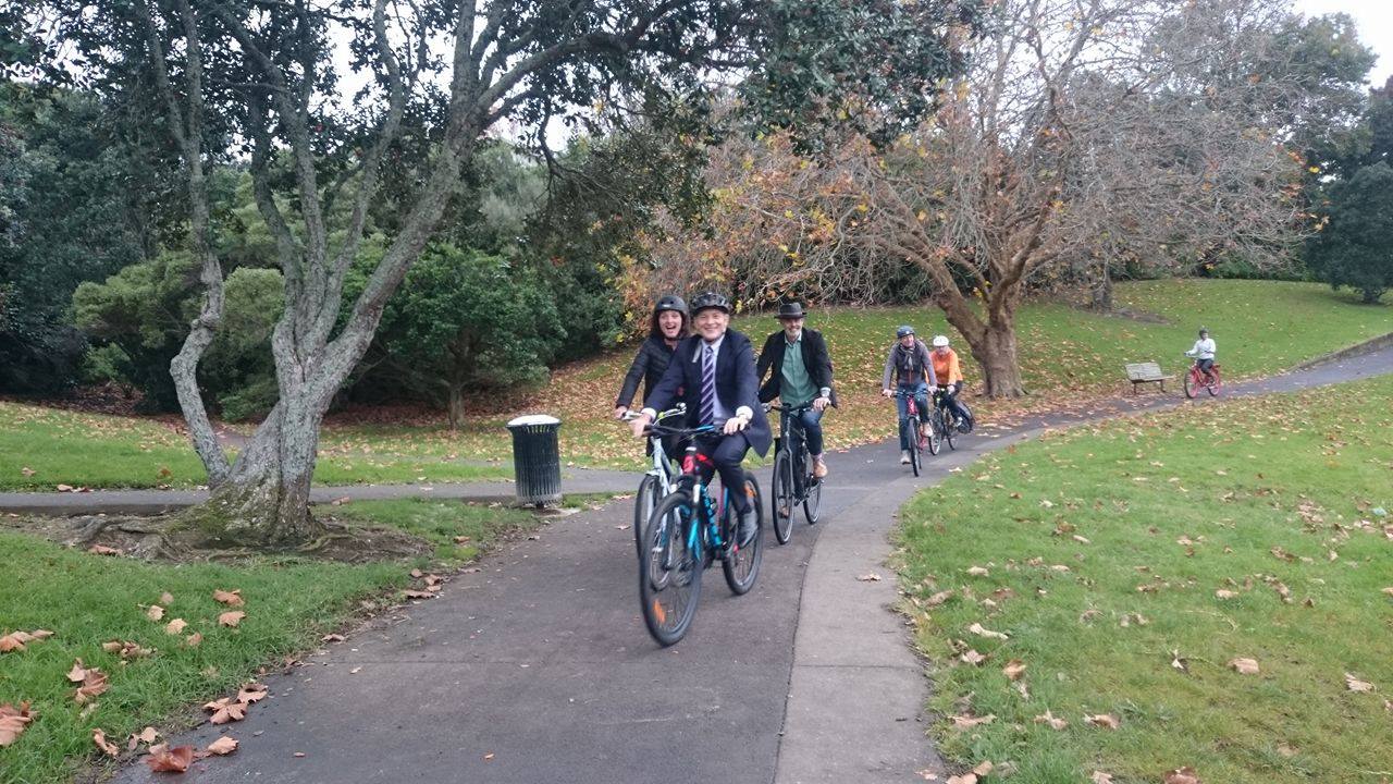 The Grey Lynn Greenway has been built in stages as funds have allowed.  The boardwalk in Coxs Bay was rebuilt and paths widenedin 2014 .  Widened paths in Hakanoa Reserve and Grey Lynn Park were completed last year.  The on road sections finally got the green light with a funding contribution from the Urban Cycling Investment fund.   We now have a complete, attractive off road route from West End Road to Williamson Ave through our beautiful parks.   It opens up connections to sports facilities, schools, local shops and will link into the network of safe routes about to get underway on Great North Road, Richmond Road and Surrey Cres.   And of course a connection to the new Grey Lynn pump track  (great to see Scott here who has been instrumental in that project). We fortunate that the community has got behind the Grey Lynn pump track and the pollinator path planting that will further enhance to the greenway.  We’re already hearing about the wider mobility and accessibility benefits of the Greenway.  A bike school bus has started from Grey Lynn School and wheelchair users are able to easily cross Richmond Road for the first time on the new crossing.
