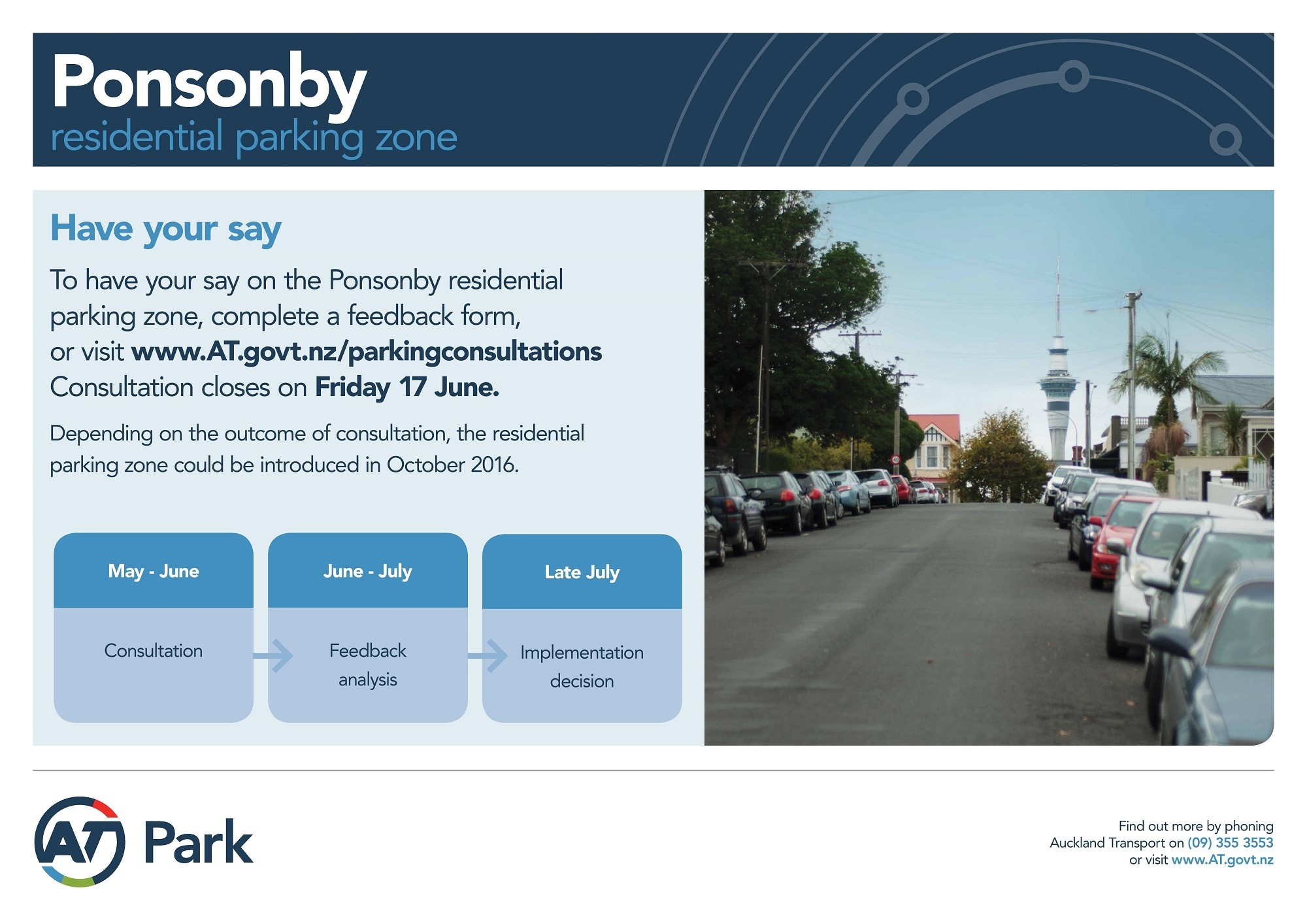 - Public Open Day hosted by Auckland Transport on the Ponsonby Residential Parking Zone at the Ponsonby Community Centre 1 June