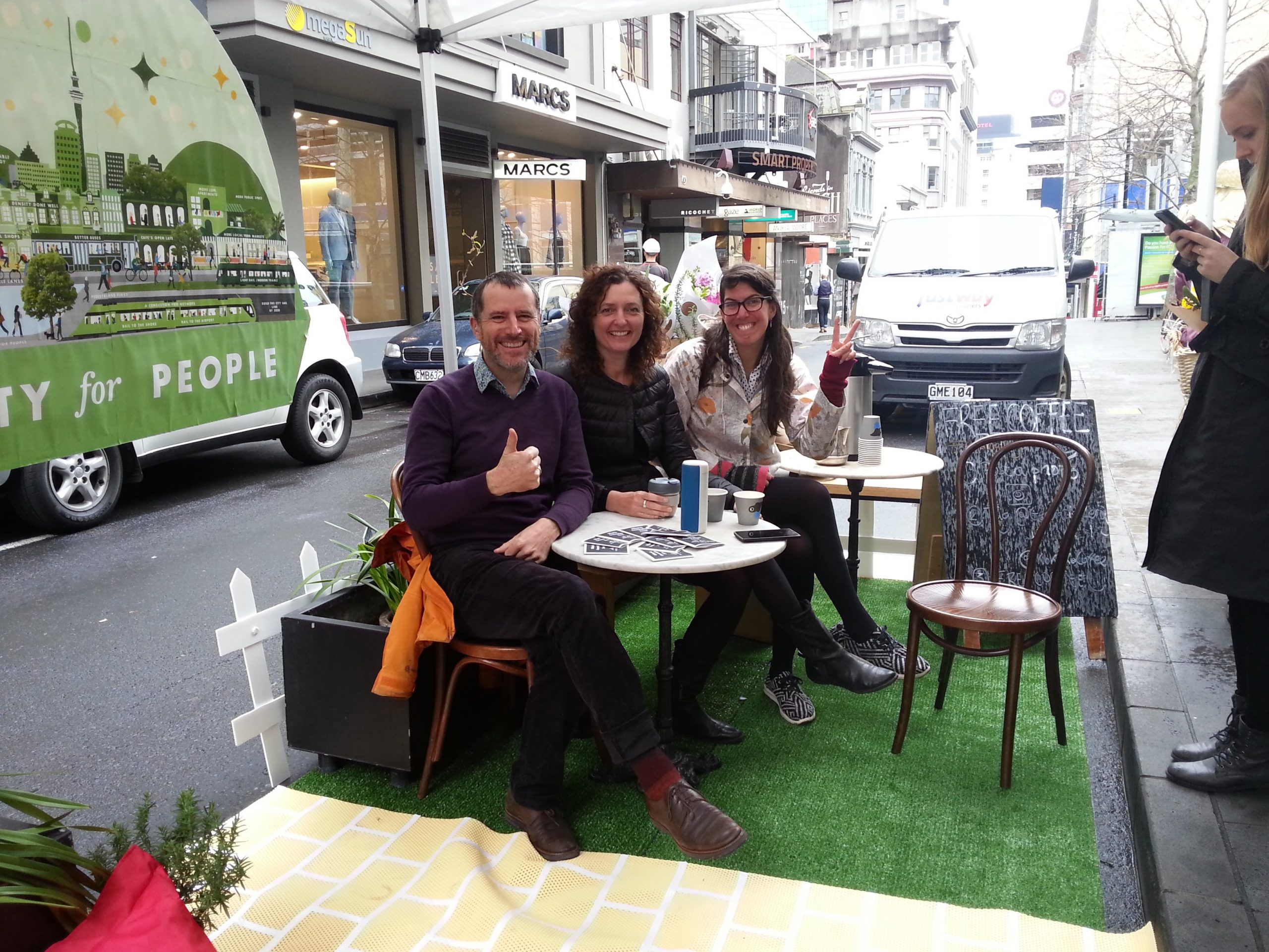 This year park(ing) day was supported by Auckland Council’s city centre transformation team as way to trial quick and inexpensive ways to create places like parklets.